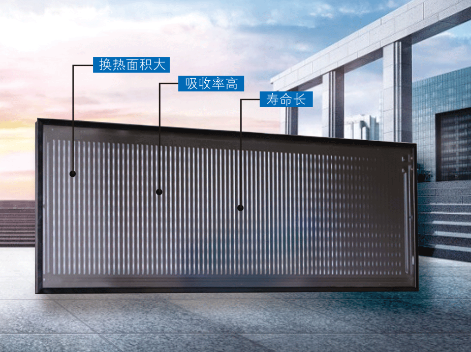 天豐全流道平板集熱器采用獨(dú)有鈦基陶瓷膜層,耐候性高,耐磨性好、耐堿性更佳、衰減性低,膜層質(zhì)量穩(wěn)定性高,無色差,一致性好,杜絕起水霧與外界潮氣侵蝕吸熱涂層,得熱量超出國家一級(jí)能效的20%以上。