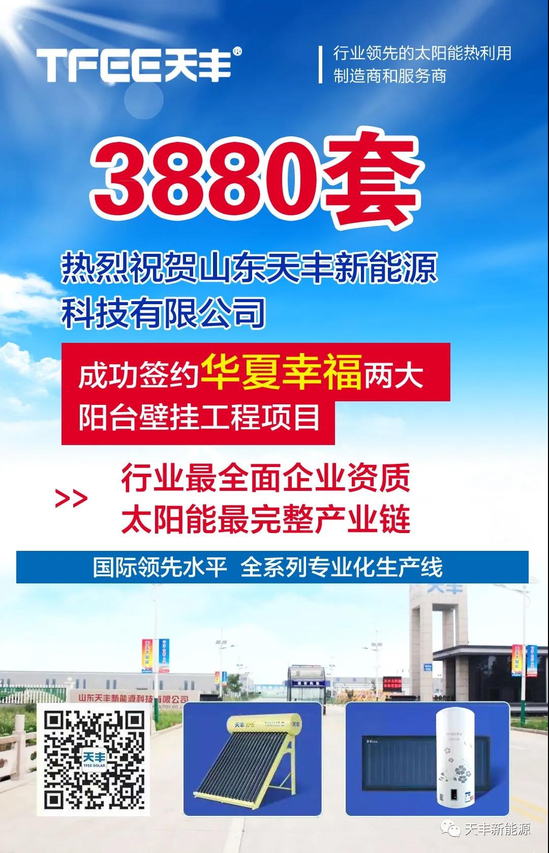 2021年,天豐繼續(xù)延續(xù)良好的發(fā)展勢頭,在房地產(chǎn)陽臺壁掛市場領(lǐng)域喜訊不斷,一路凱歌,近日,公司工程部再添雙單,成功與華夏幸福地產(chǎn)簽約,后續(xù)將全程操作華夏幸福兩大陽臺壁掛工程項目,陽臺壁掛太陽能熱水器數(shù)量方面,第一項工程1882套,第二項工程1998套,共計3880套,在牛年春節(jié)到來之際,雙喜臨門,再創(chuàng)佳績。